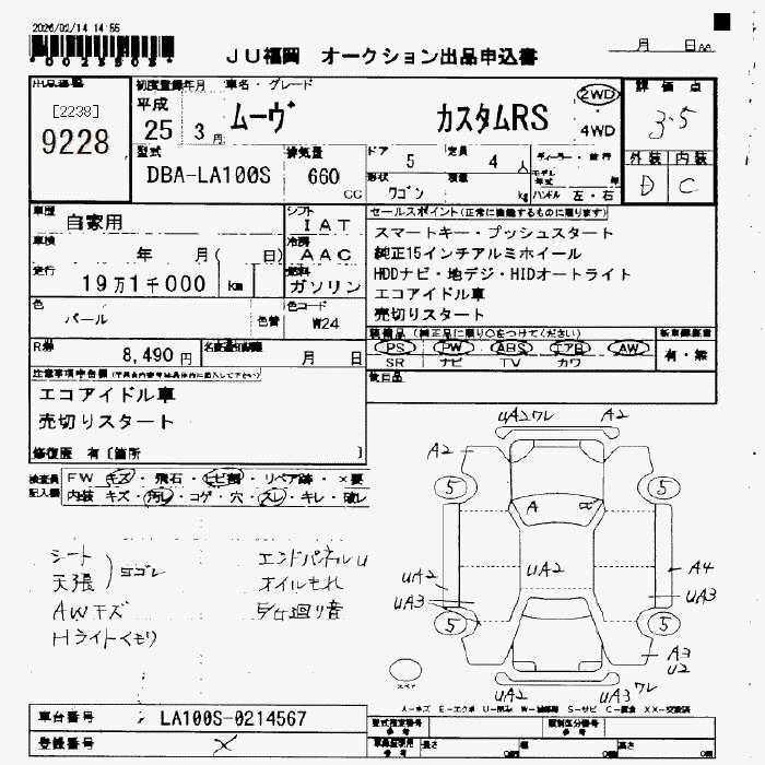 Статус выставлен на аукцион Лот 9228 Аукцион JU Fukuoka Дата аукциона 13.03.2026