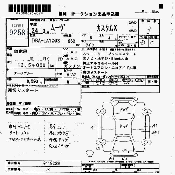 Статус выставлен на аукцион Лот 9258 Аукцион JU Fukuoka Дата аукциона 13.03.2026