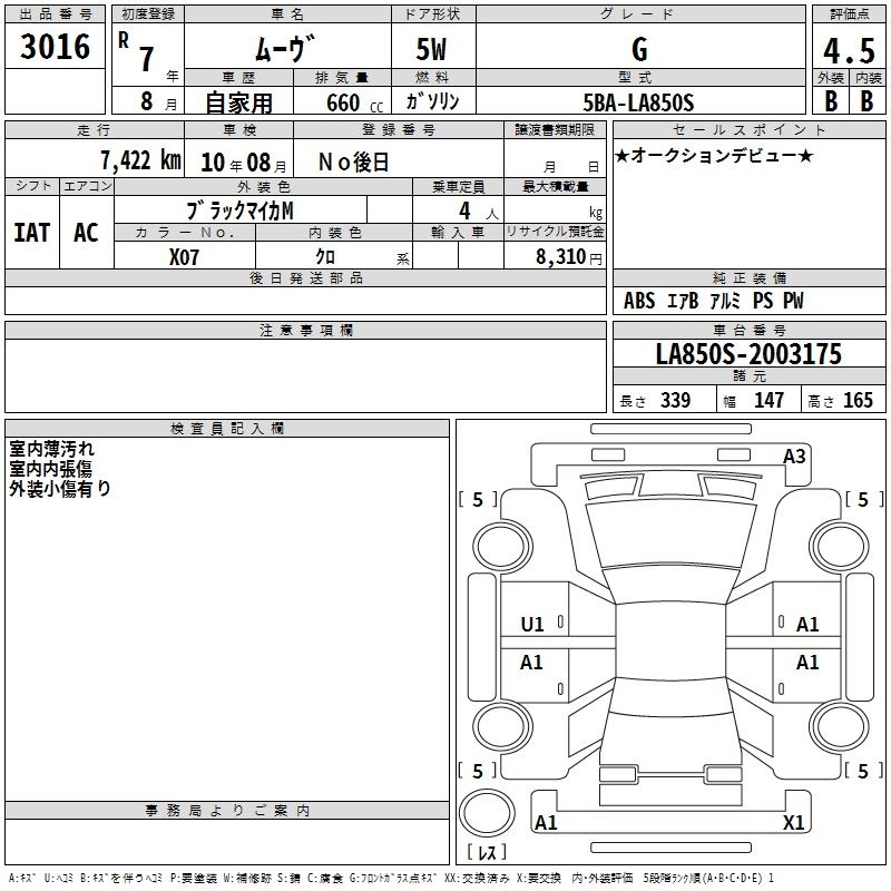 Статус выставлен на аукцион Лот 3016 Аукцион TAA Chubu Дата аукциона 19.03.2026