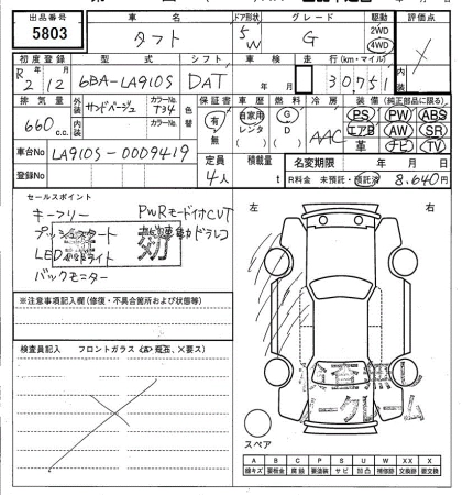 Стартовая цена авто на аукционе 30 000 ¥