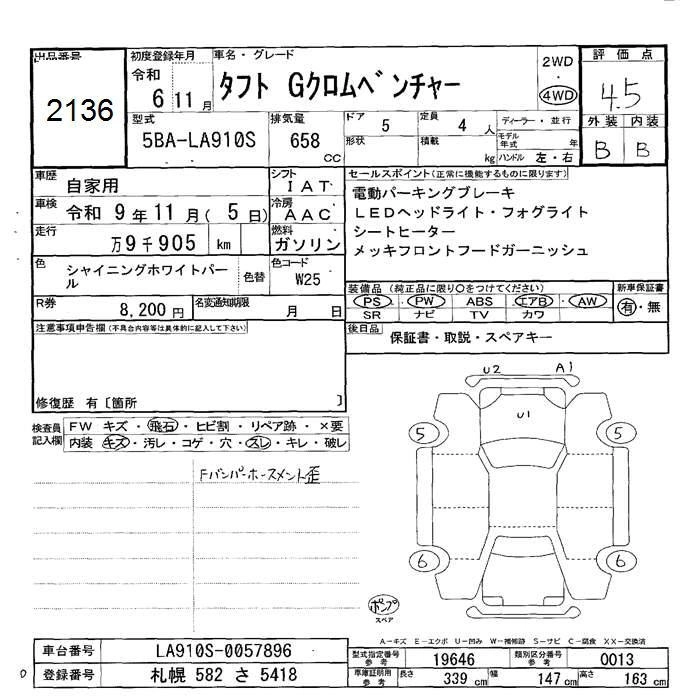 Статус negotiate sold Лот 2136 Аукцион JU Hokkaido Дата аукциона 23.01.2026