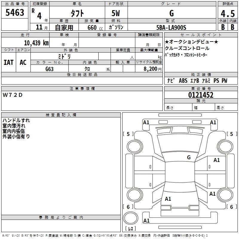 Статус выставлен на аукцион Лот 5463 Аукцион TAA Chubu Дата аукциона 12.03.2026