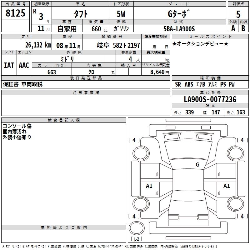 Статус выставлен на аукцион Лот 8125 Аукцион TAA Chubu Дата аукциона 12.03.2026