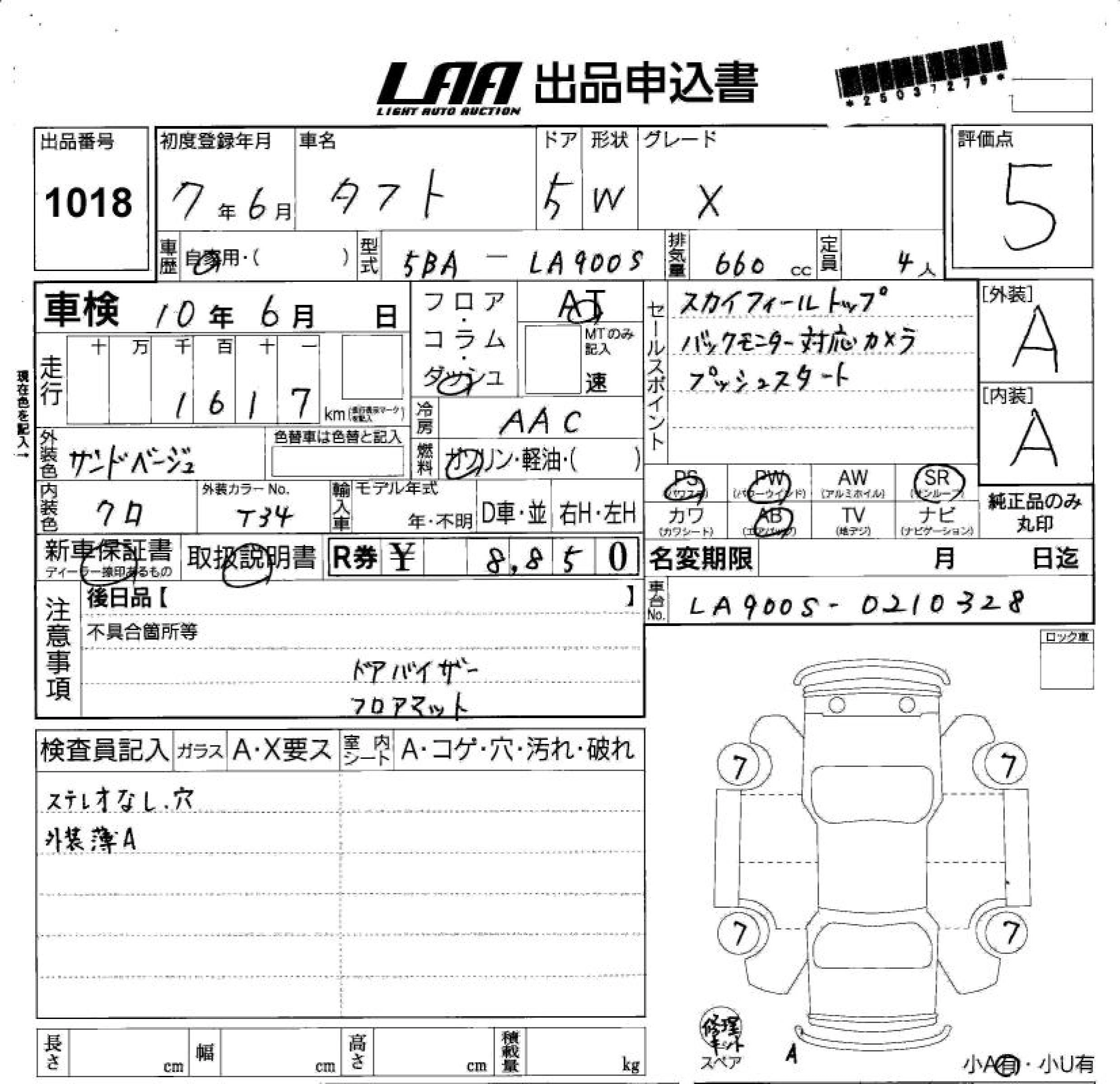 DAIHATSU TAFT 2025 г., лот № 1018