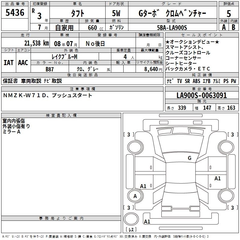 DAIHATSU TAFT 2021 г., лот № 5436