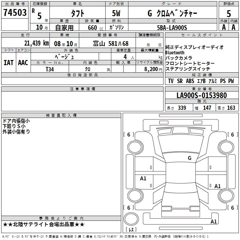 Статус выставлен на аукцион Лот 74503 Аукцион TAA Chubu Дата аукциона 19.03.2026