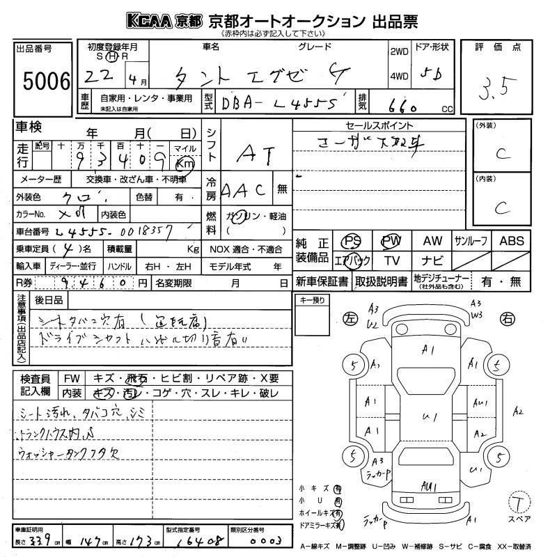 DAIHATSU TANTO EXE 2010 г., лот № 5006