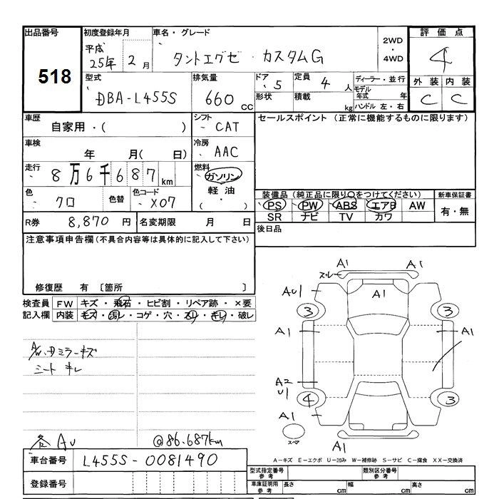 DAIHATSU TANTO EXE 2013 г., лот № 518