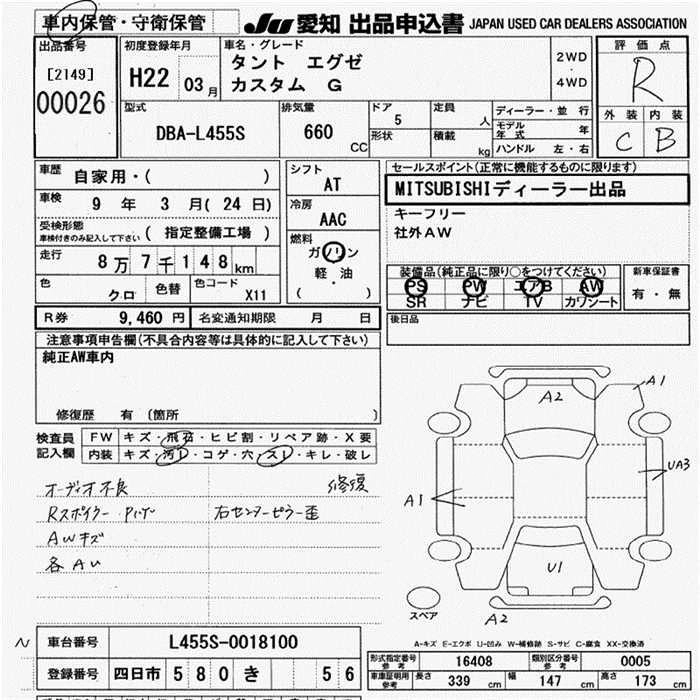 Статус выставлен на аукцион Лот 26 Аукцион JU Aichi Дата аукциона 12.03.2026