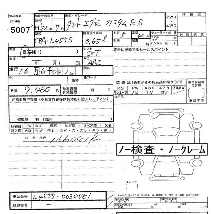 Статус выставлен на аукцион Лот 5007 Аукцион JU Oita Дата аукциона 11.03.2026