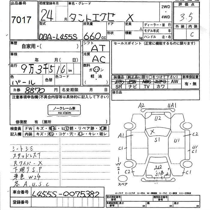DAIHATSU TANTO EXE 2012 г., лот № 7017