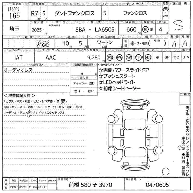Статус выставлен на аукцион Лот 165 Аукцион MIRIVE Saitama Дата аукциона 10.12.2025
