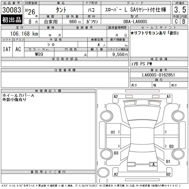Год выпуска2014 Пробег 106 000 км КузовLA600S Комплектация SLOPER L SA REAR SEAT