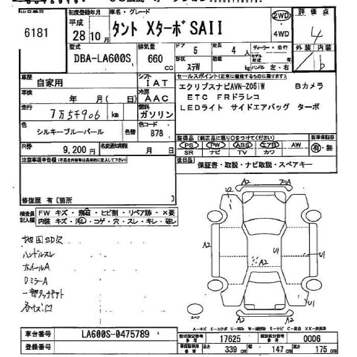 DAIHATSU TANTO 2016 г., лот № 6181
