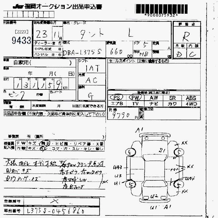 Статус не продан Лот 9433 Аукцион JU Fukuoka Дата аукциона 14.11.2025