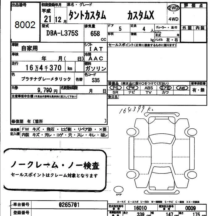DAIHATSU TANTO 2009 г., лот № 8002