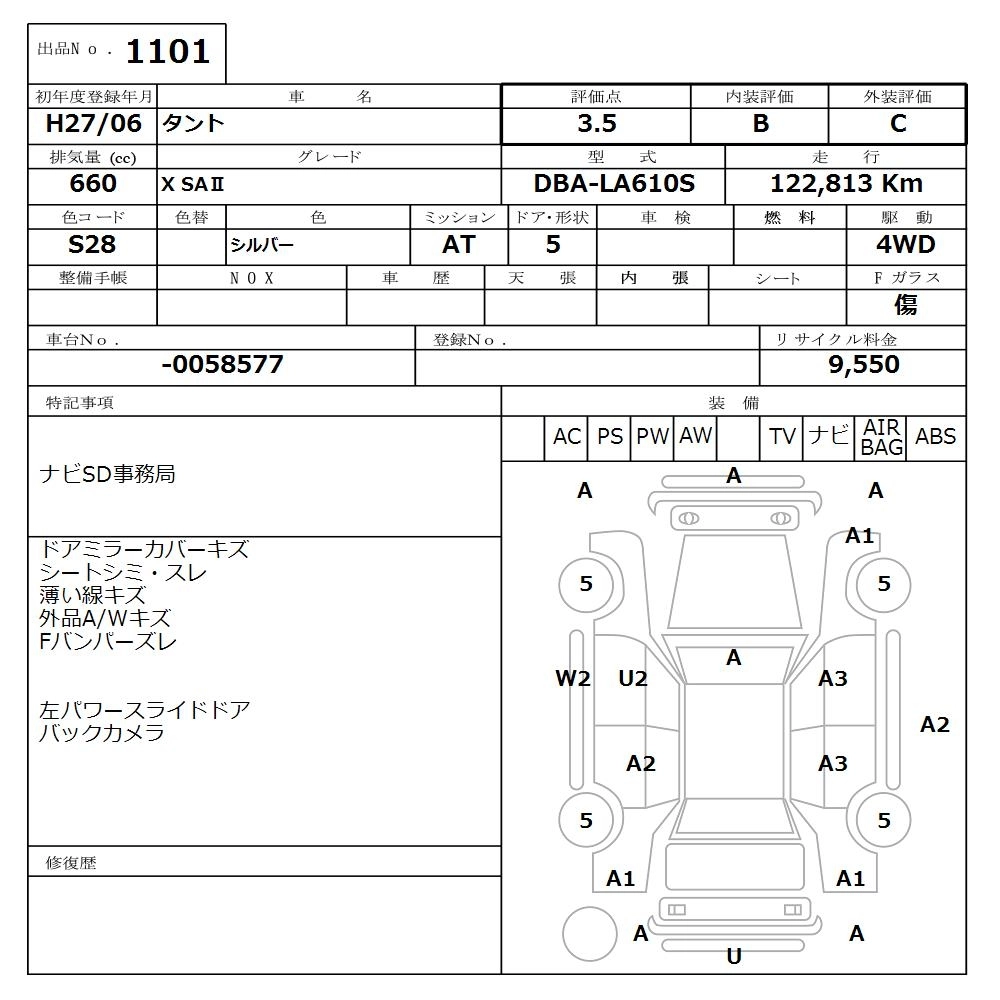 Статус выставлен на аукцион Лот 1101 Аукцион Nissan Osaka Дата аукциона 17.11.2025