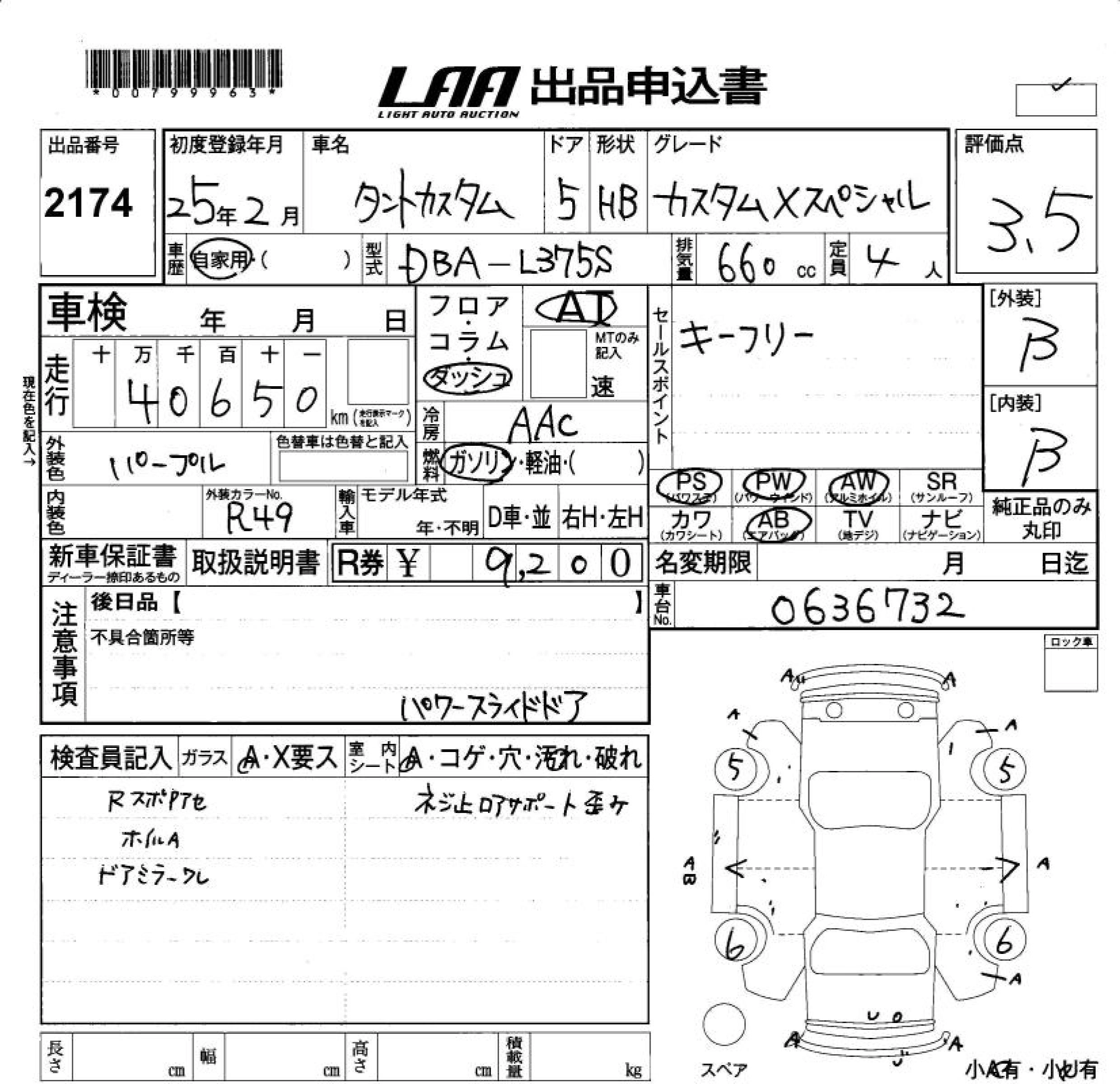 DAIHATSU TANTO 2013 г., лот № 2174
