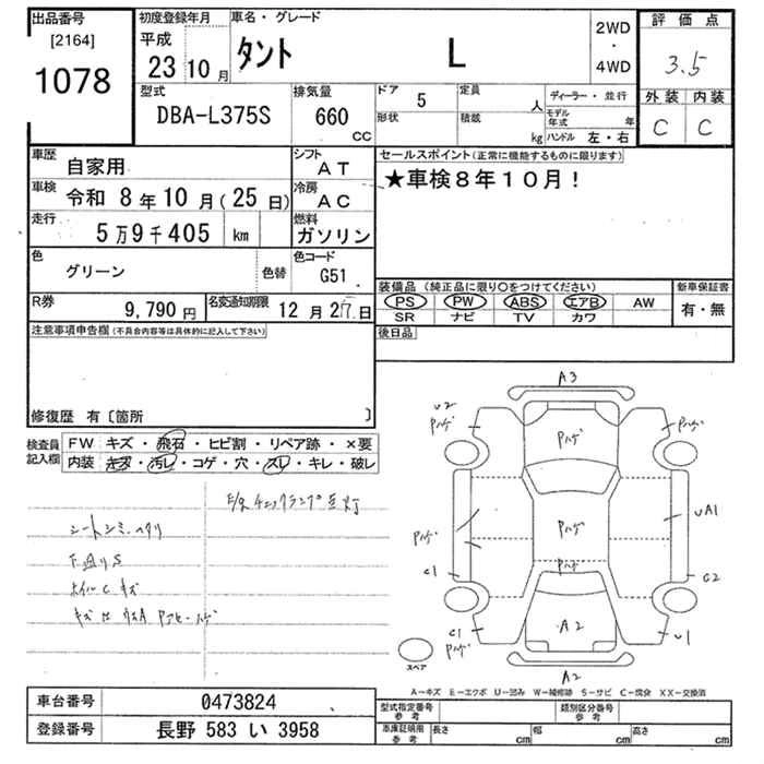 DAIHATSU TANTO 2011 г., лот № 1078