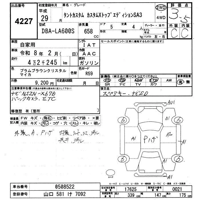 DAIHATSU TANTO 2017 г., лот № 4227