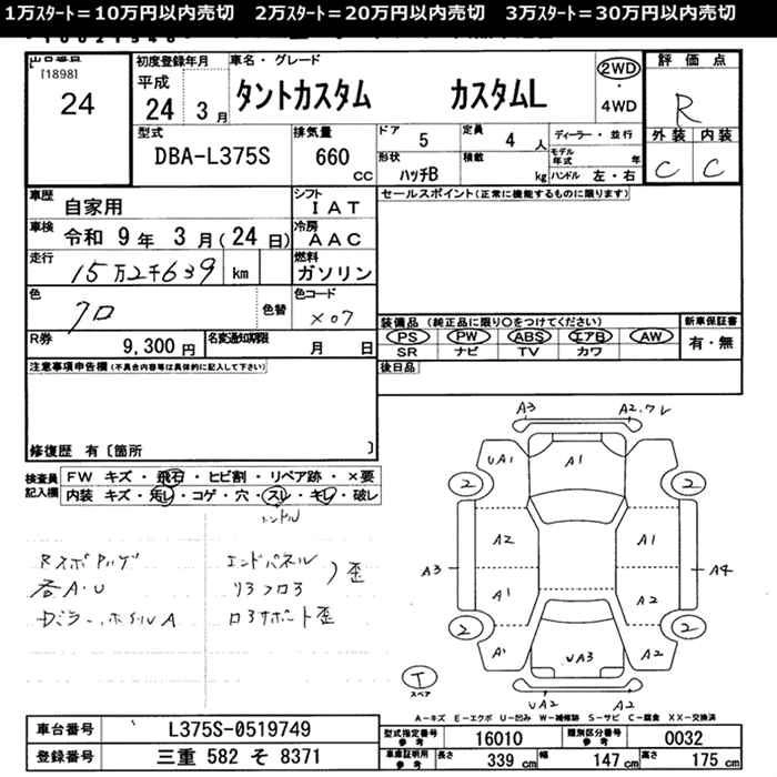 Стартовая цена авто на аукционе 20 000 ¥