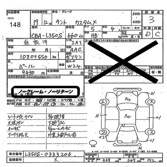 Стартовая цена авто на аукционе 20 000 ¥