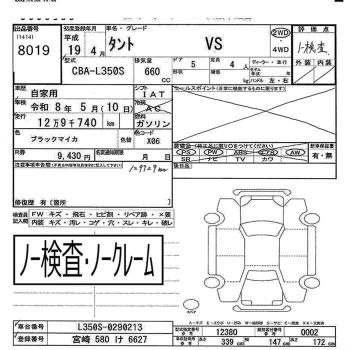 Год выпуска2007 Пробег 130 000 км КузовCBA-L350S КомплектацияVS 2WD