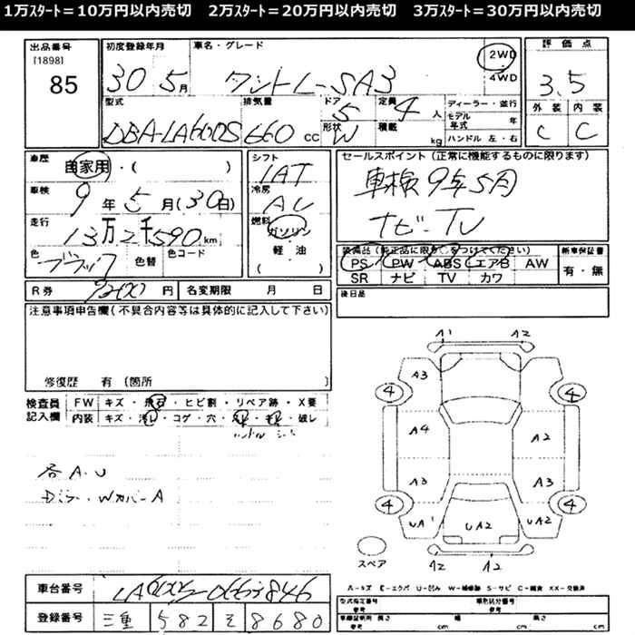 Стартовая цена авто на аукционе 20 000 ¥