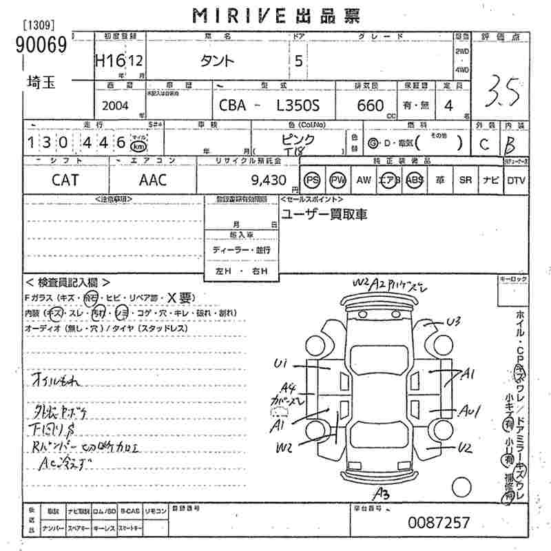 Статус выставлен на аукцион Лот 90069 Аукцион MIRIVE Saitama Дата аукциона 10.12.2025