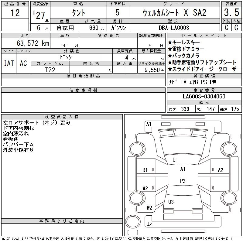 Год выпуска2015 Пробег 64 000 км КузовLA600S Комплектация WELLCOME SEAT X SA2