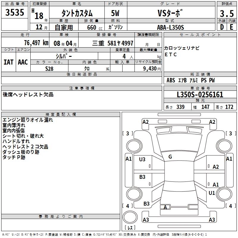 Статус выставлен на аукцион Лот 3535 Аукцион TAA Chubu Дата аукциона 11.12.2025