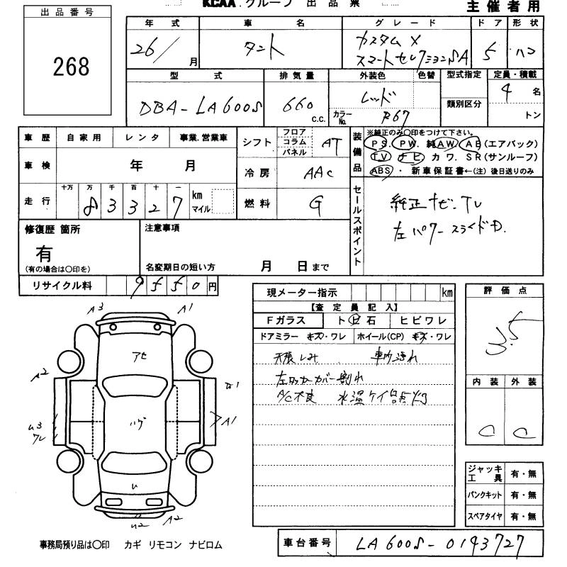 DAIHATSU TANTO 2014 г., лот № 268