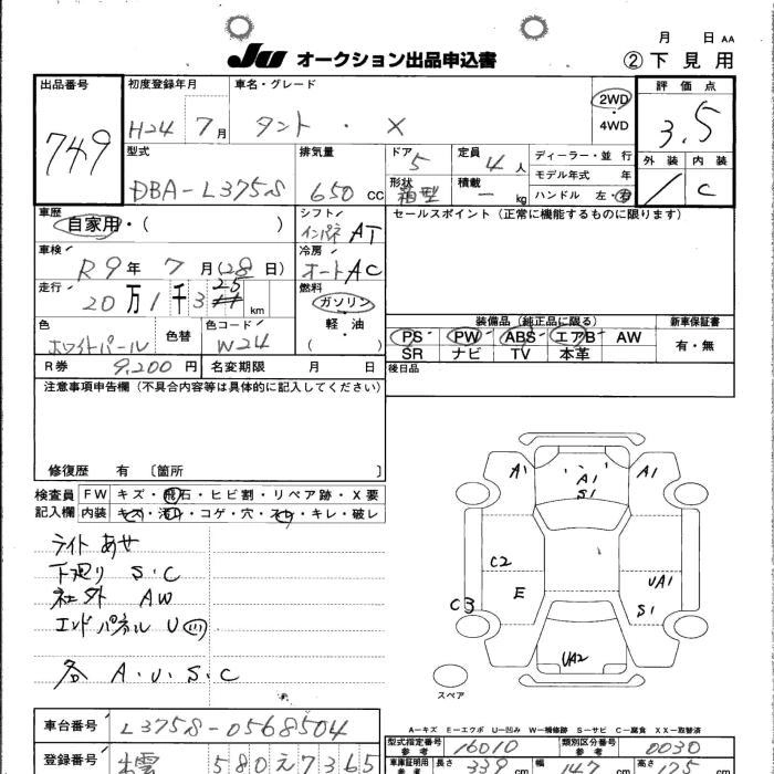 DAIHATSU TANTO 2012 г., лот № 749