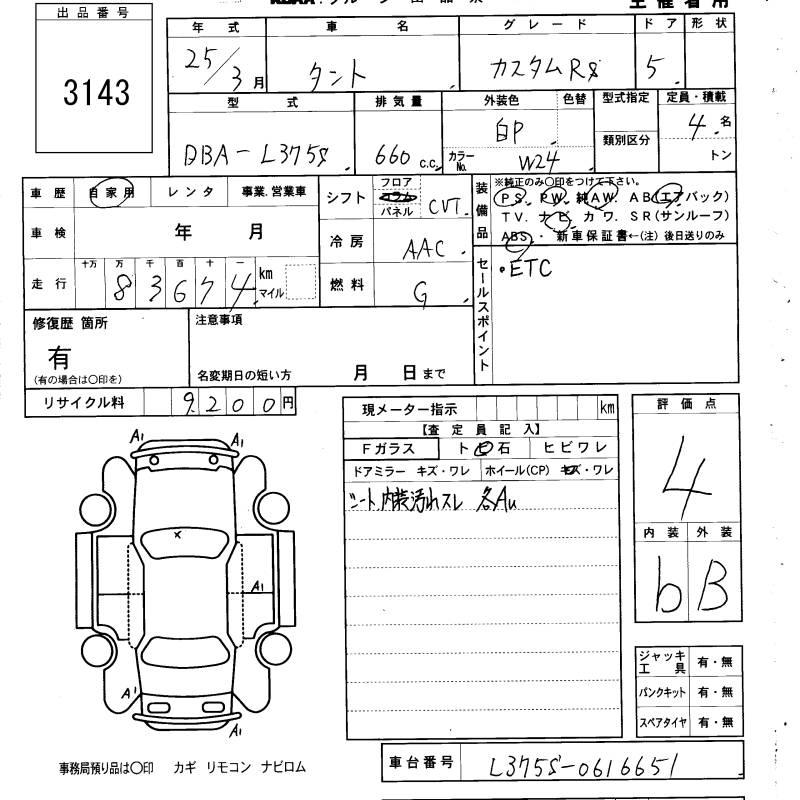 DAIHATSU TANTO 2013 г., лот № 3143