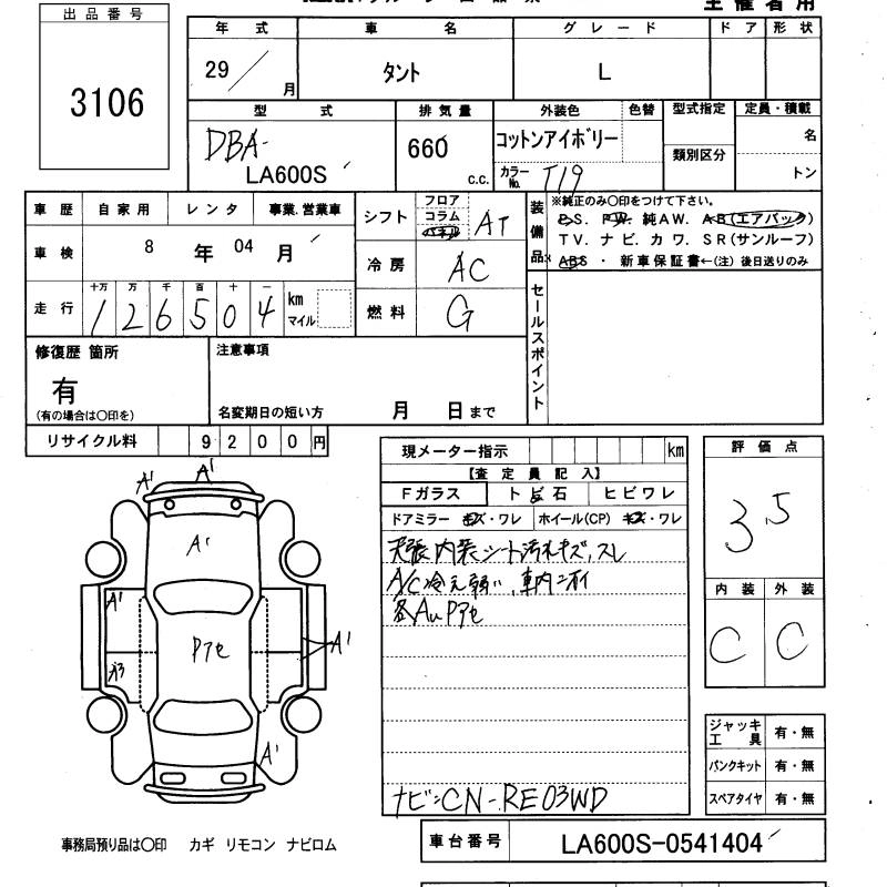 DAIHATSU TANTO 2017 г., лот № 3106