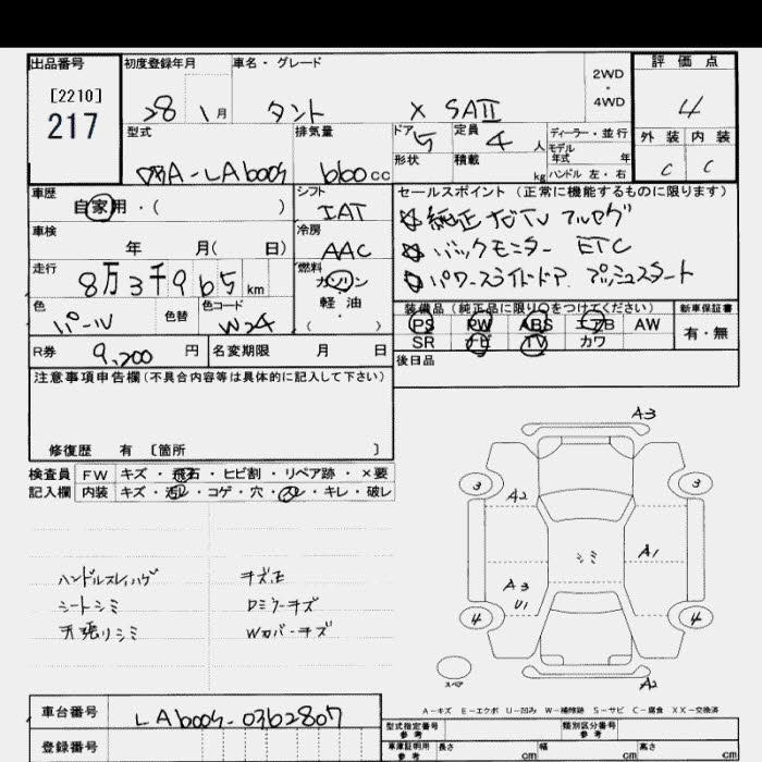 DAIHATSU TANTO 2016 г., лот № 217