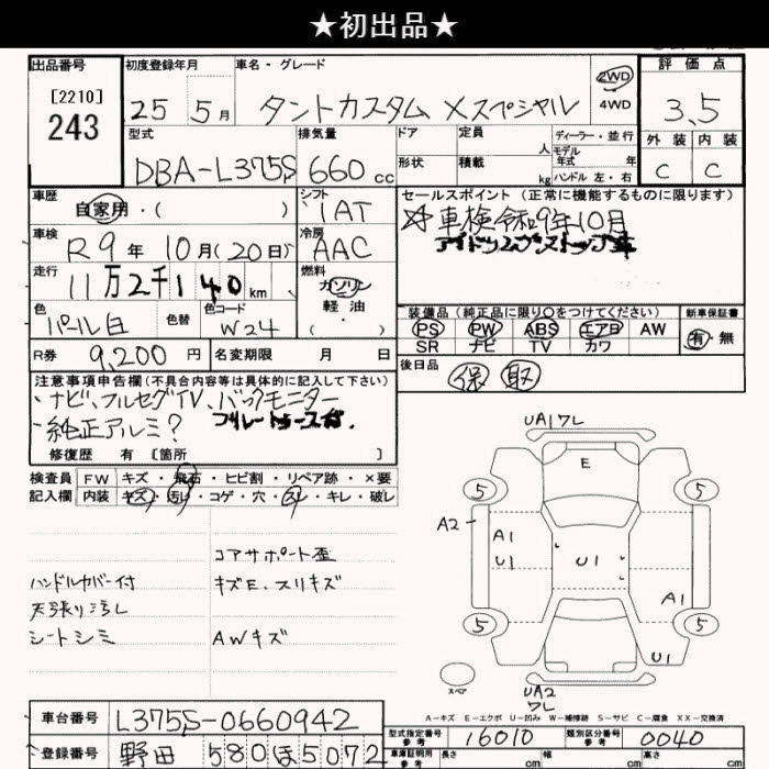 Статус выставлен на аукцион Лот 243 Аукцион JU Saitama Дата аукциона 23.12.2025