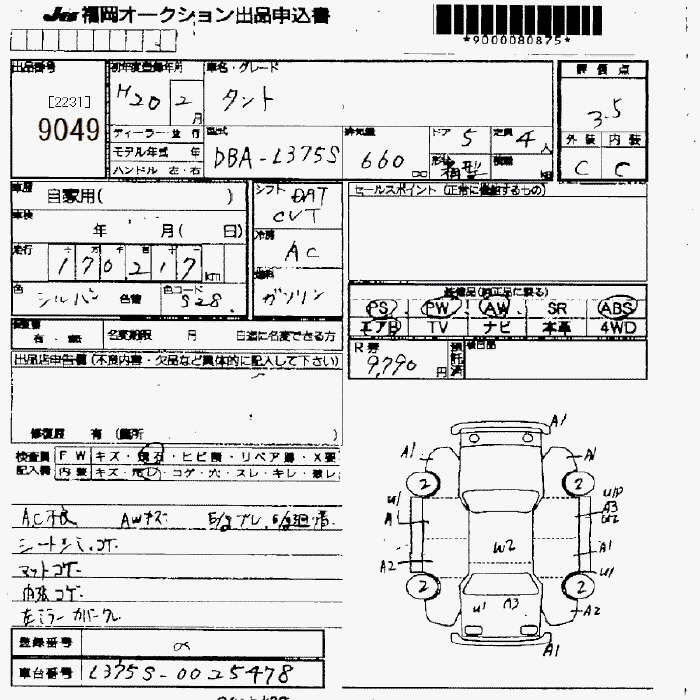 Статус не продан Лот 9049 Аукцион JU Fukuoka Дата аукциона 23.01.2026