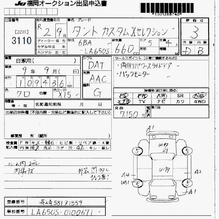 Статус не продан Лот 3110 Аукцион JU Fukuoka Дата аукциона 23.01.2026