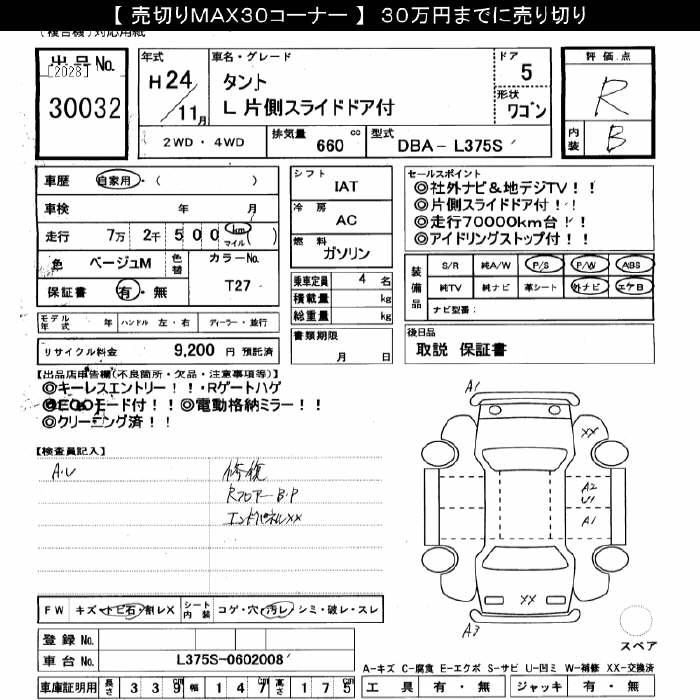 DAIHATSU TANTO 2012 г., лот № 30032