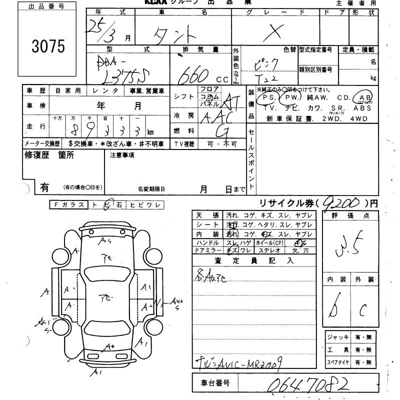 DAIHATSU TANTO 2013 г., лот № 3075