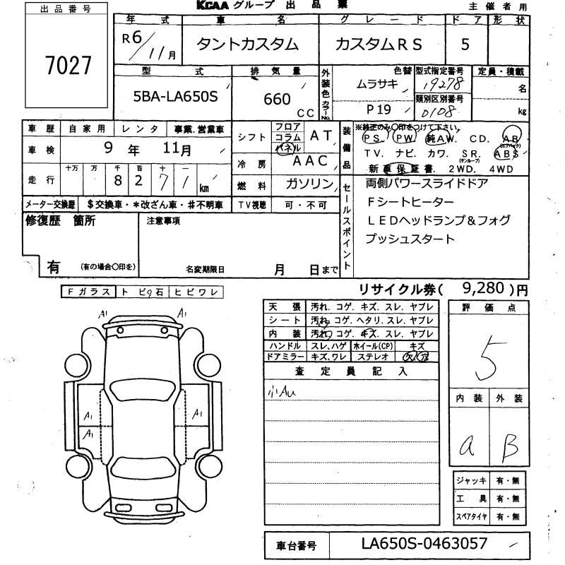 DAIHATSU TANTO 2024 г., лот № 7027