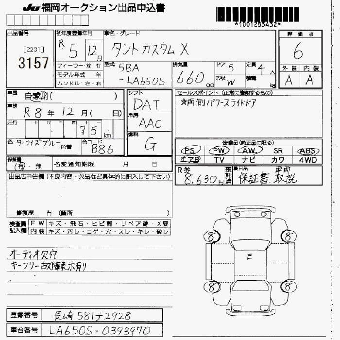Статус продан Лот 3157 Аукцион JU Fukuoka Дата аукциона 23.01.2026