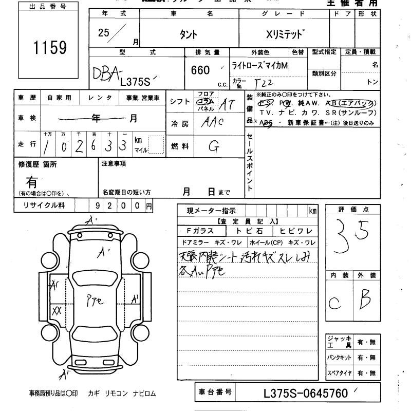 DAIHATSU TANTO 2013 г., лот № 1159
