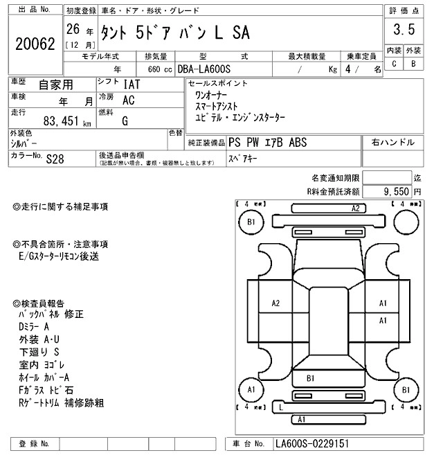 Год выпуска2014 Пробег 83 000 км КузовLA600S КомплектацияL SA