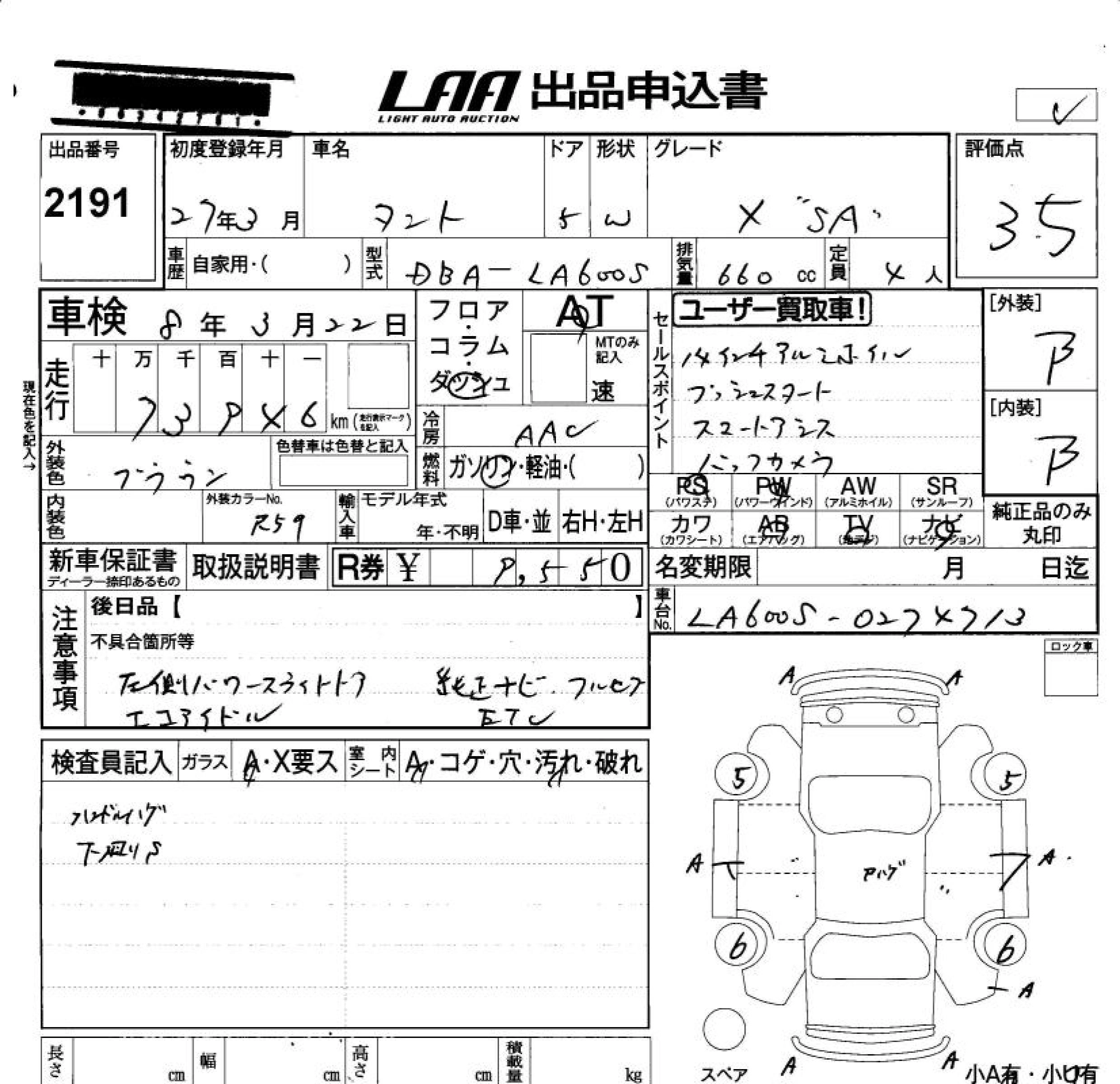 Статус продан Лот 2191 Аукцион LAA Okayama Дата аукциона 23.01.2026