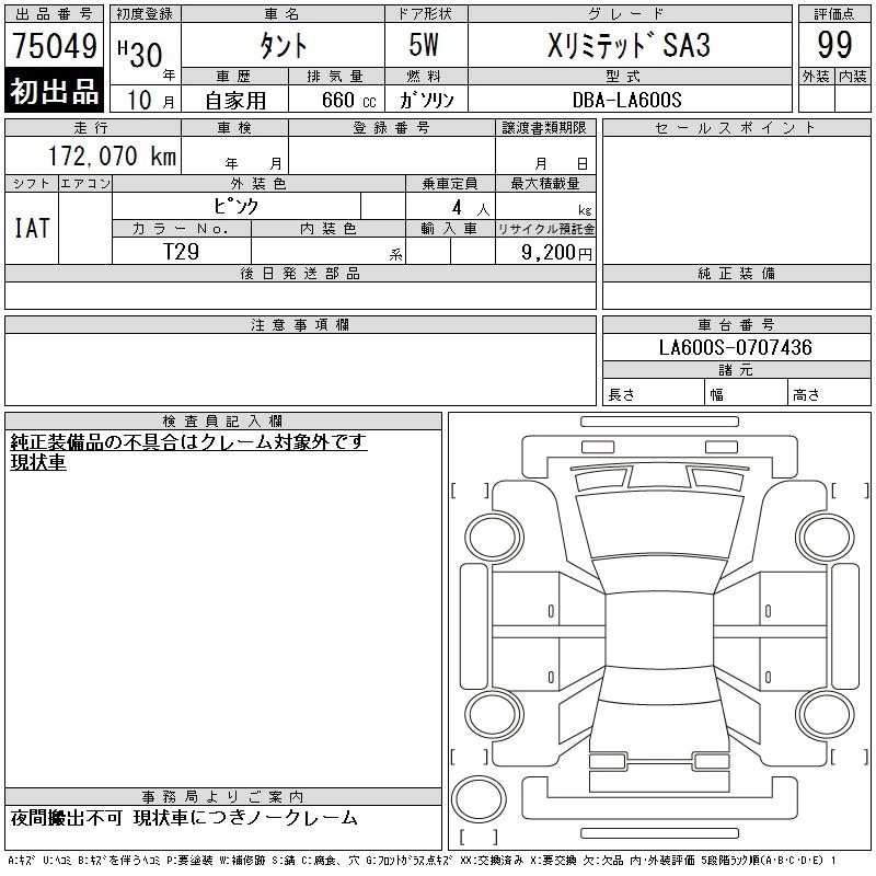 Статус выставлен на аукцион Лот 75049 Аукцион CAA Chubu Дата аукциона 28.01.2026