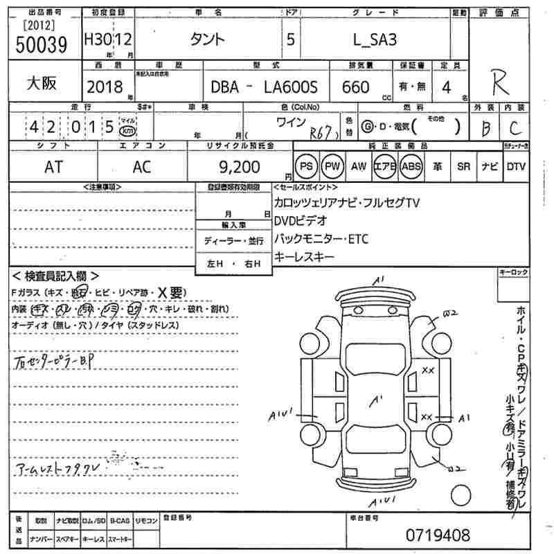DAIHATSU TANTO 2018 г., лот № 50039