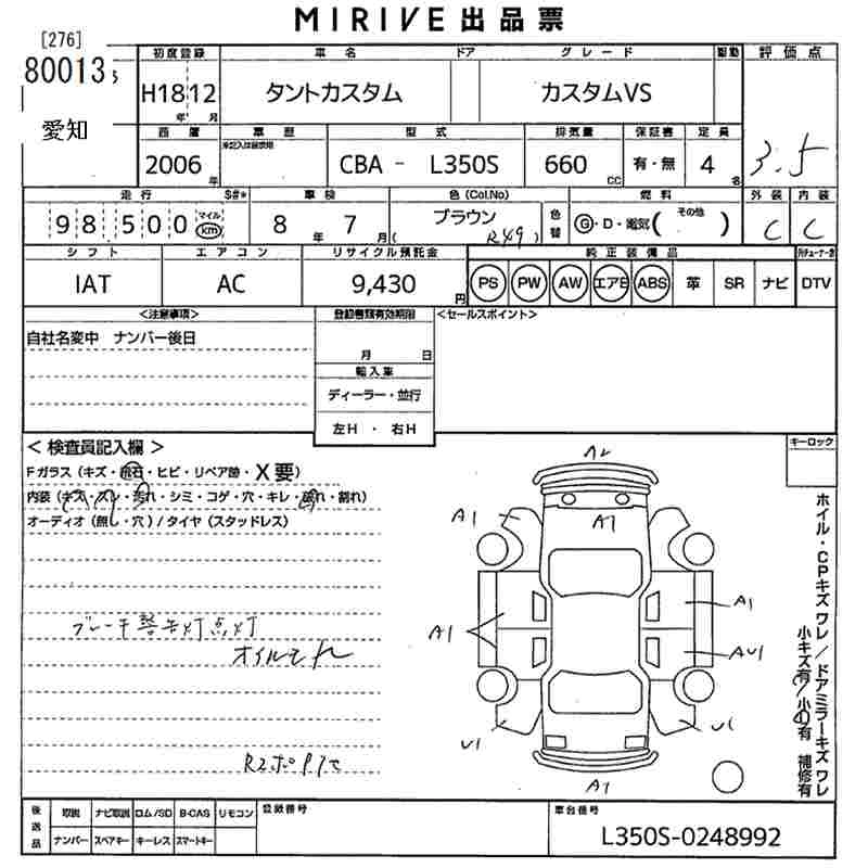 Статус продан Лот 80013 Аукцион MIRIVE Aichi Дата аукциона 30.01.2026