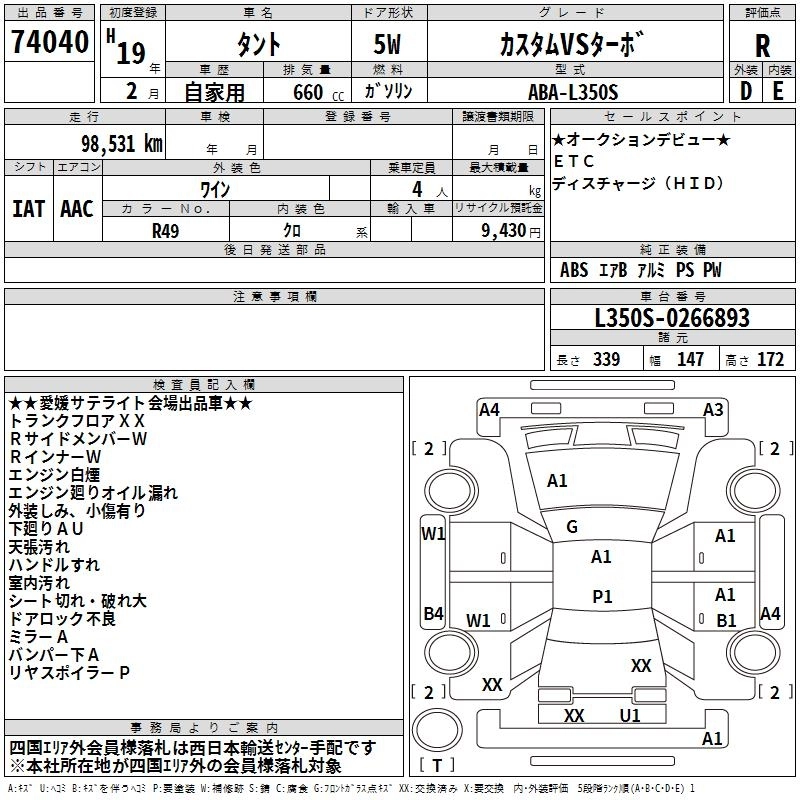Статус выставлен на аукцион Лот 74040 Аукцион TAA Shikoku Дата аукциона 10.03.2026